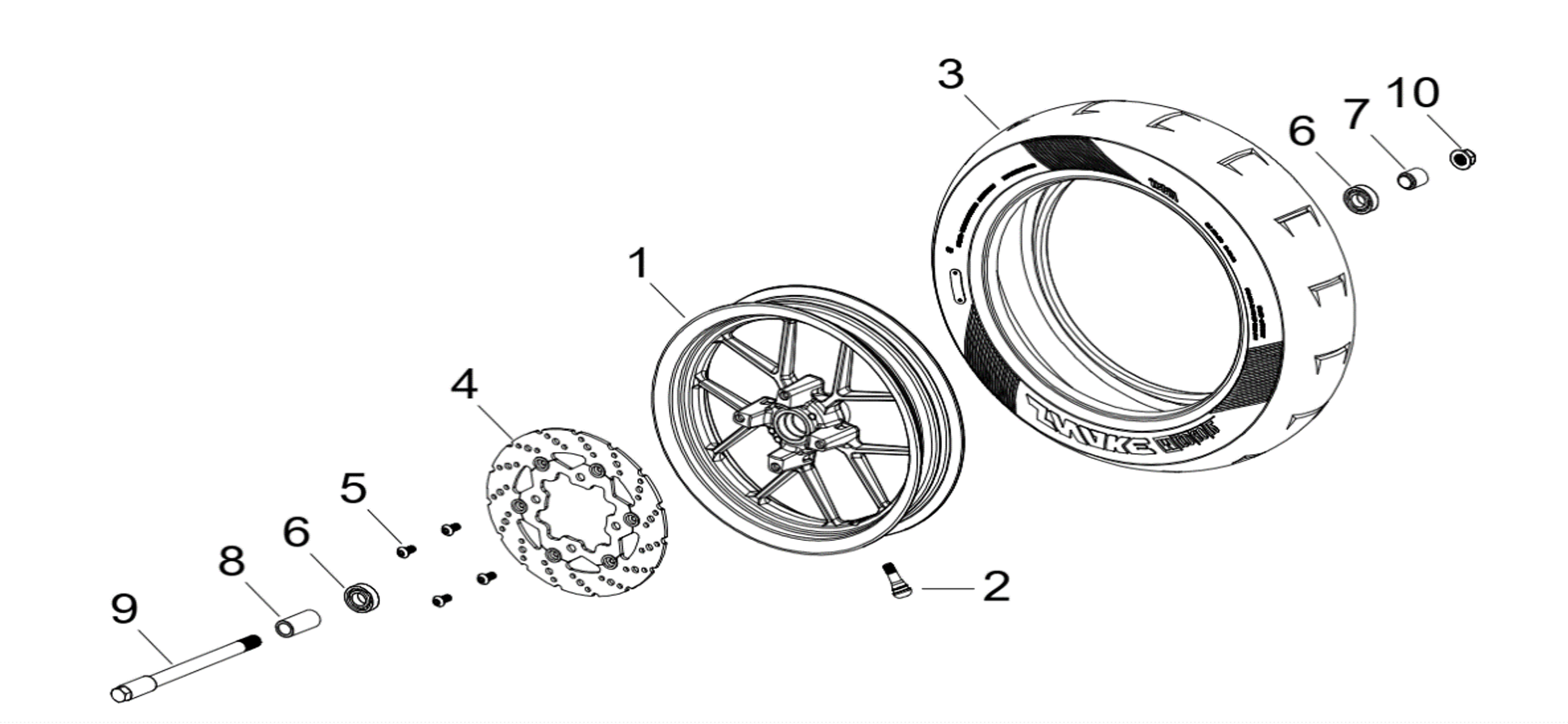 Front Axle L=215 mm with holes M6 with Self-locking nut M14 for SM bikes d=15mm