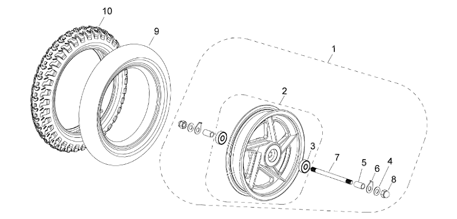Complete Front wheel BB12 W/T front wheel axle