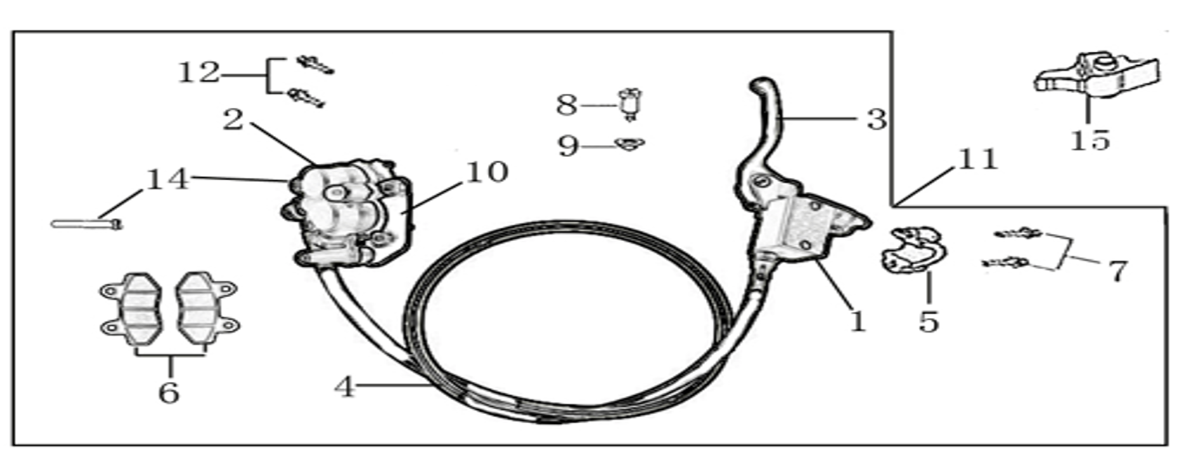 Front brake assy 2 pumps L=1110mm d.10mm/d.10mm w/t asbestos 2020