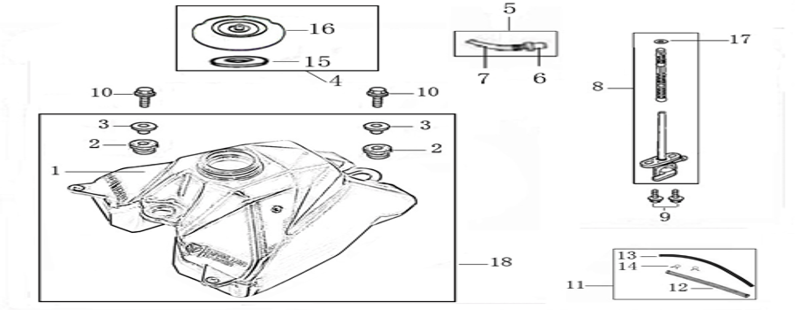 YCF Fuel tank with YC110-1910 1EA (suitable for pre 2013 bikes)