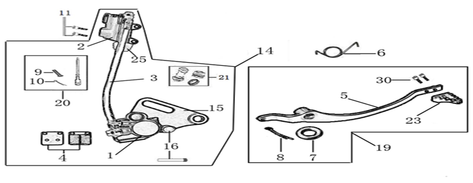 Rear brake aasy 1 piston W/T asbestos L=370mm 2020