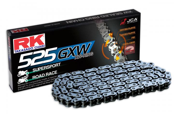 RK GXW Series can be applied on both Street Use, securing chain mileage as far as 20 000 km and also Track usage, featuring high performance for the best lap time.